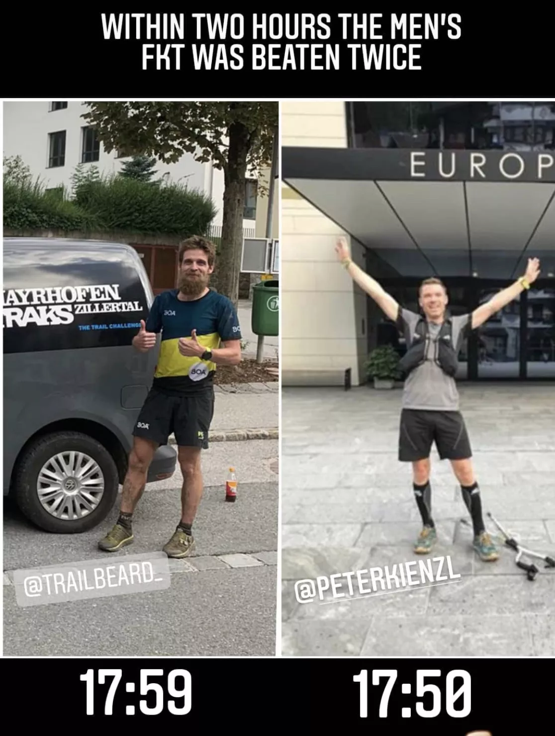 Ehe ich aus Tirol Richtung Heimat aufbreche, gratuliert mir „Mr. Berliner Höhenweg” Markus Kröll persönlich. Daniel Jung schreibt mir eine Textnachricht, freut sich mit mir und kündigt an, demnächst meine Zeit angreifen zu wollen. Und dann erfahre ich, dass Peter Kienzl meinen Rekord gerade eben um weitere neun Minuten nach unten gedrückt hat. Weder hat der Südtiroler von meinem Versuch gewusst, noch umgekehrt. Kienzl startete zwei Stunden nach mir, wir sind uns nie begegnet. So sehr ich seine Leistung respektiere, so leer und geschlagen fühlte ich mich. Da läufst du 18 Stunden lang eine FKT, und nur zwei Stunden später ist sie wieder Schnee von gestern.